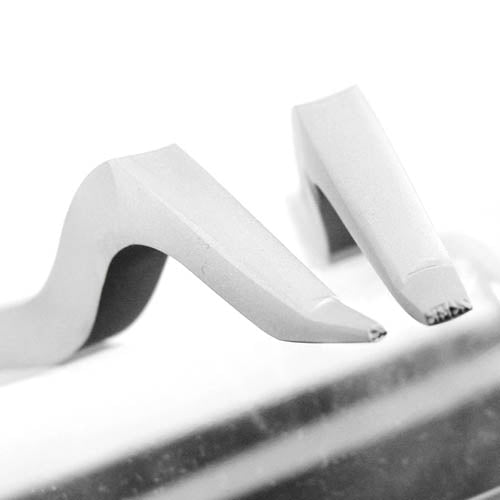 Jewelry Makers know the value of a Bent Ring Stamp as it’s the best way to get quality marks within a ring. With its goose-neck shape and curved image surface per your specifications, you can effortlessly mark what you want, where you want with a simple strike of a hammer. From microstamp applications up to 4.5mm artwork sizes, our Bent Ring stamps are the perfect choice for marking small designs accurately and easily.