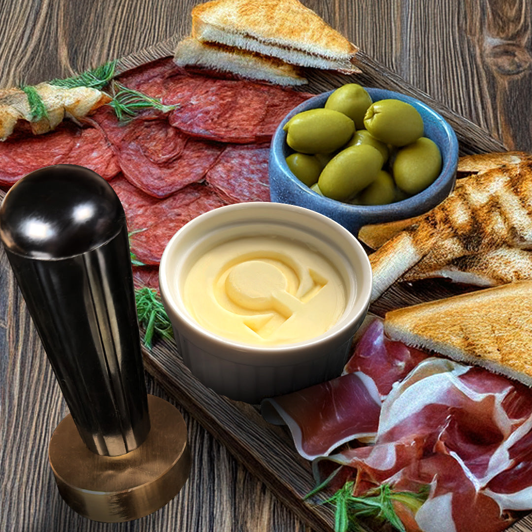 Our food grade brass stamps are the perfect choice for marking butter! Use our stamp builder below to upload a logo or enter your custom text! Made from solid food safe brass for longer marking out of the freezer or by using liquid nitrogen or freeze spray. Includes plastic handle for easy and accurate use.