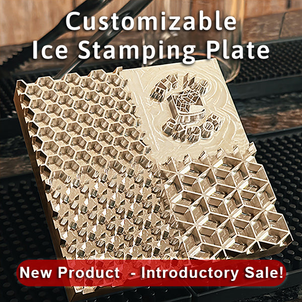 Give your ice cubes extra flair with our customizable ice stamping plate! Our ice stamps will extend your personal or commercial branding, perfect for special events and brand marketing. Our ice stamping plates feature four quadrants that can be configured either with your bar and restaurant logos, or with our pre-made patterns.