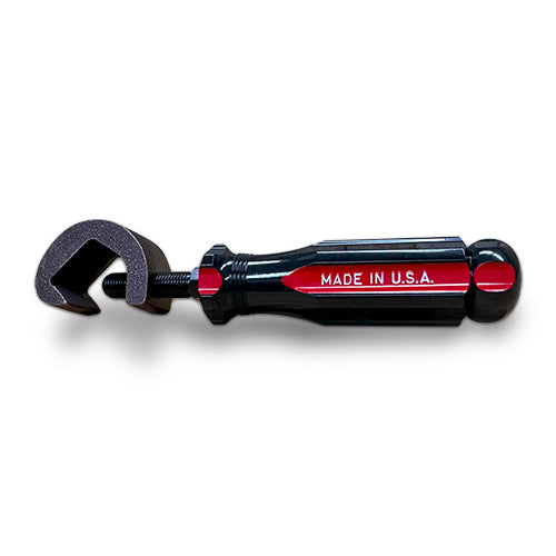 - Secure grip plastic handle with threaded bolt fitted with steel jaw.
