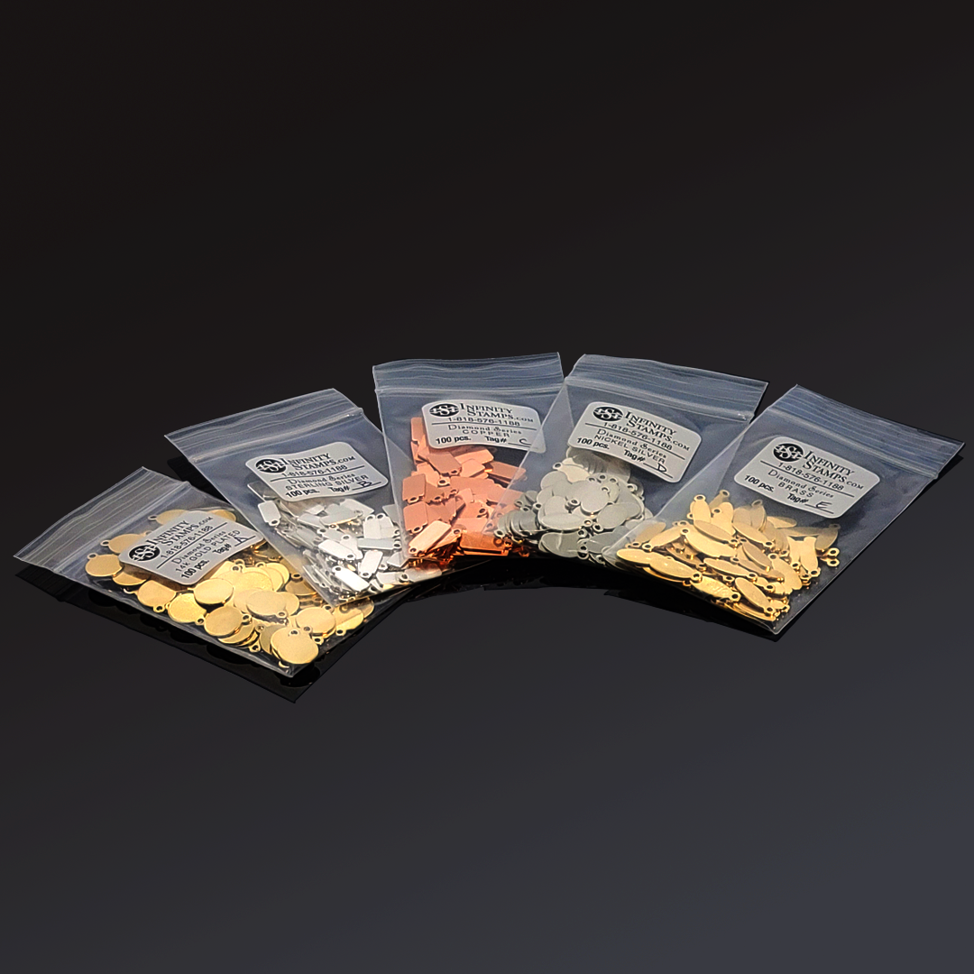 Jewelry tags are a perfect way to add branding and name recognition to your finished work! With ten available shapes and five different material choices to select from, you can ensure the tags create a cohesive presentation that will compliment your jewelry's design. Using the options above, configure your order for jewelry tags and matching jump rings to purchase direct from our online store!